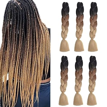 6pack Jumbo Braids Hair Crochet Ombre Braiding Hair Dreifarbige Kanekalon Braids Synthetische Haarverlangerungen 24 Zoll Schwarz Braun Hellbraun Amazon De Beauty